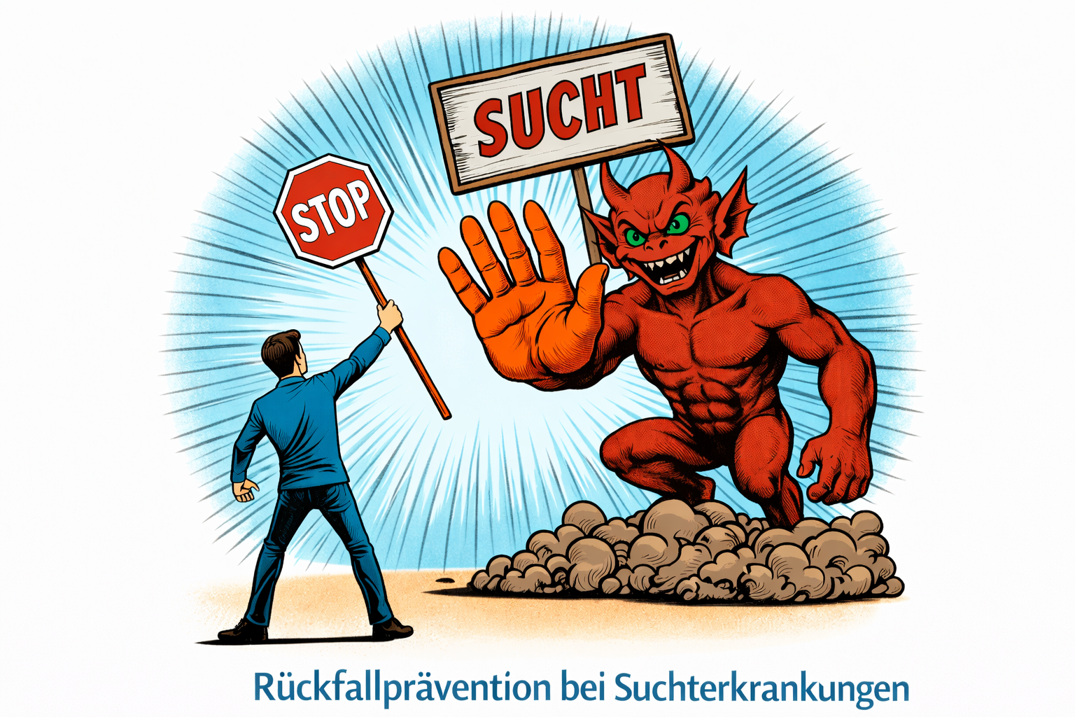 | Personen mit Verhaltenssüchten (z.B. Kaufen, Spielen, Medien) sowie grundsätzlich abstinente Personen mit stoffgebundener Suchterkrankung (z.B. Alkohol, Cannabis, Drogen, Medikamente), z.B. nach erfolgter ambulanter oder stationärer Reha/Nachsorge, wenn noch Therapiebedarf besteht. | Reflexion und Bewältigung persönlicher Risikosituationen, Strategien wiederholen und entwickeln, um Suchtdruck und negative Emotionen zu bewältigen, Konsumangebote entschlossen ablehnen und handlungsfähig bleiben, selbst wenn es zu einem Rückfall kommt. |